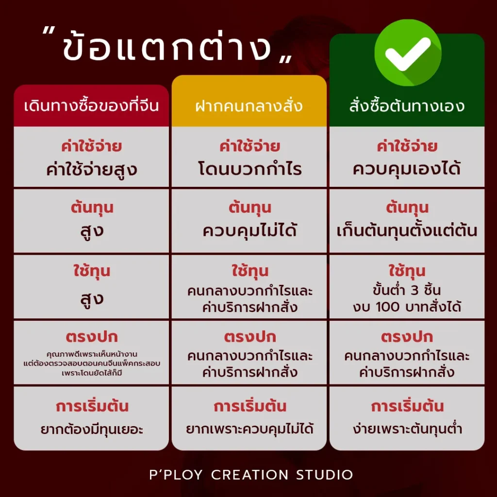แต่ก่อนเคยคิดว่าการนำเข้าด้วยตัวเอง คือยากมาก ๆ แต่พอได้ เจอกับน้องพลอย พูดเลยว่าสุด ไม่เพียงแต่อธิบาย หลักการการ สั่งนำเข้า แต่ได้แนะแนวทางในการประกอบอาชีพ เพื่อลดต้นทุน และบอกแนวทางที่เราต้องพูดได้คำเดียวว่าว้าวขอบคุณน้องพลอย ที่ได้แนะแนวทางและประสบการณ์จริงที่ได้ถ่ายทอดให้คือมันเยอะจริงๆ